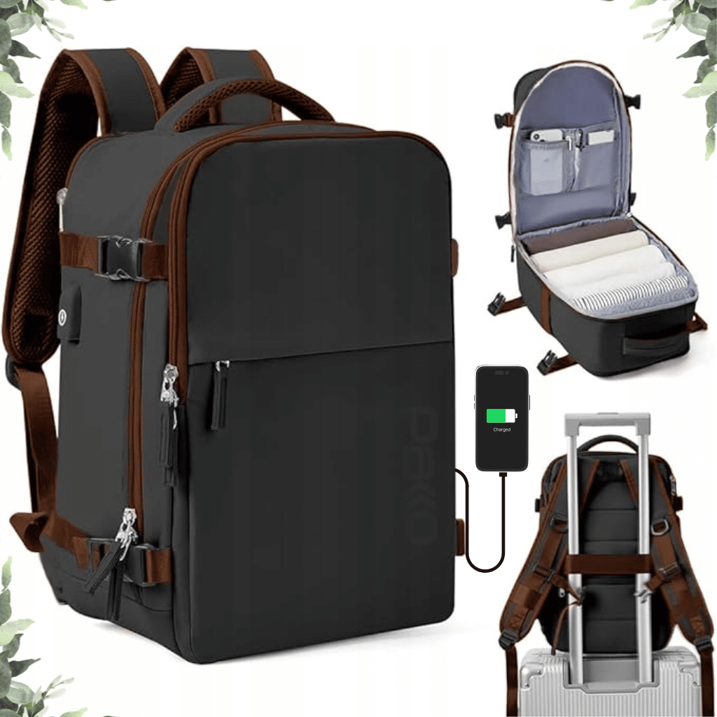 JetPack Travel Cestovný batoh do lietadla 45x30x20 cm – príručná taška s nabíjacím USB portom a vreckom na obuv, spĺňa limity EasyJet, Emirates a ďalšie