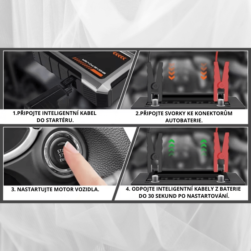 Nahradí těžké a objemné klasické startéry díky lehké a kompaktní konstrukci, kterou snadno uložíte do kufru nebo přihrádky vozidla.