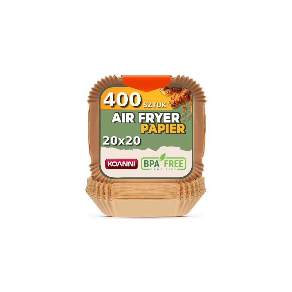 Air fryer pečící papír 400 ks – nelepivé vložky, 20×20 cm, pro Ninja / Cosori / Philips