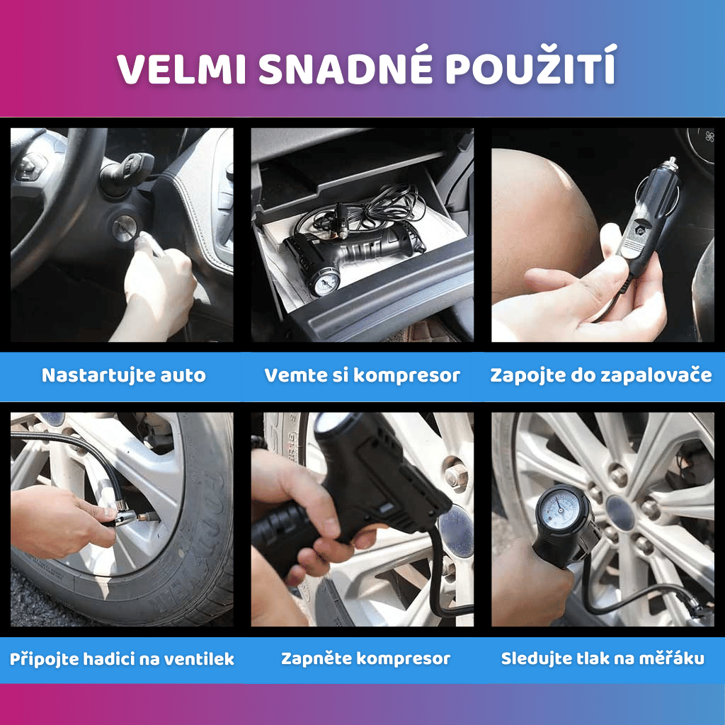 - Vzduchový kompresor do auta: 12V