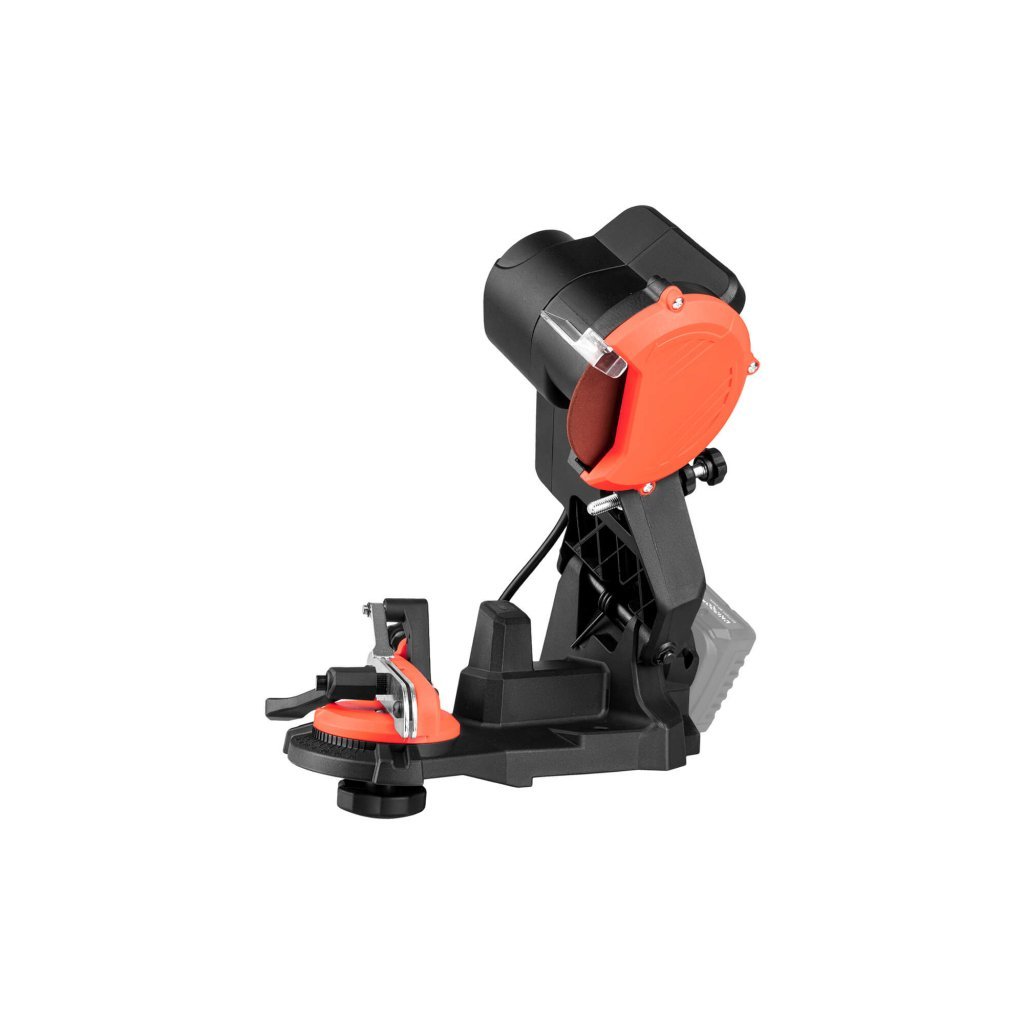 Stroj je vybaven kartáčovým motorem, který je napájen 20V baterií. Přesné a rychlé ostření řetězu je zajištěno rychlostí otáčení kotouče 5900 ot/min.