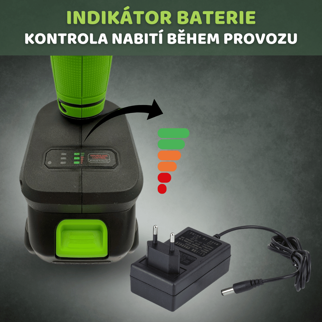 Přehledný indikátor nabití baterie vám navíc vždy ukáže, kolik energie zbývá.