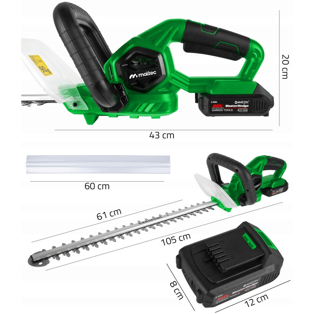 HedgeCut Max 20V – Aku nůžky s dlouhou lištou a rychlonabíječkou, Li-Ion baterií a bezpečnostní brzdou