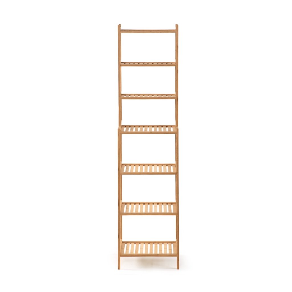 Policový díl se sedmi prostornými policemi pro praktické uložení, který je vyrobený z kvalitního a odolného bambusu. Otevřená konstrukce zajišťuje přehlednost a snadný přístup k věcem. Bambusový regál LADRA bude skvělý do koupelny, kuchyně, obývacího pokoje i předsíně. Přírodní design dodá interiéru svěží a moderní vzhled.