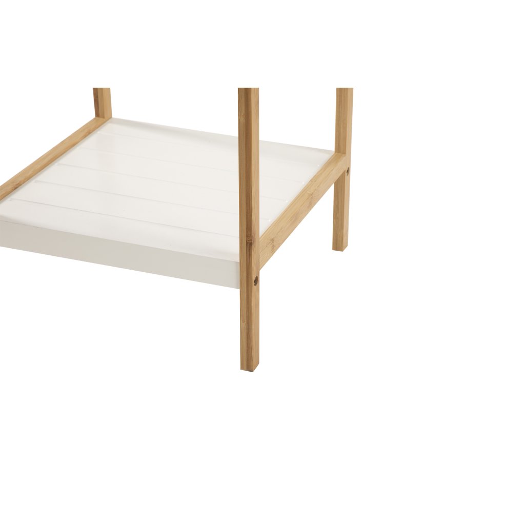 Bambusový regál s bílými policemi o rozměru 34x33x110 cm.