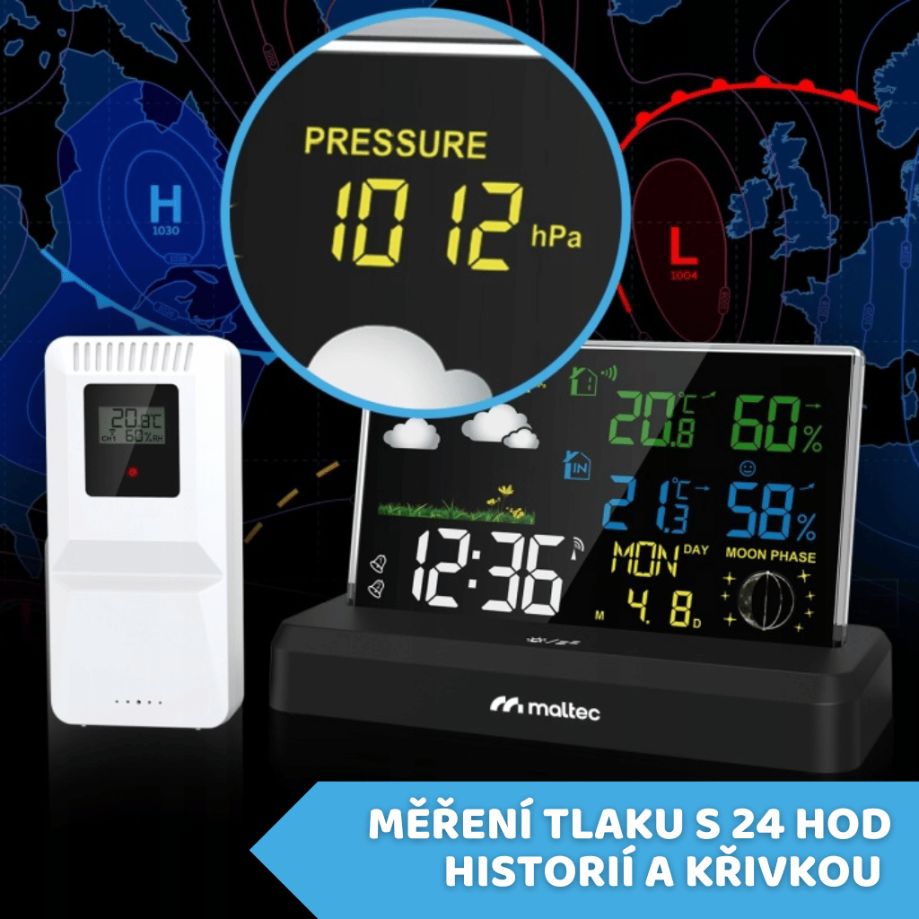 Díky kombinaci měření teploty, vlhkosti a tlaku máte kompletní přehled o tom, co se děje venku i uvnitř vašeho domova.