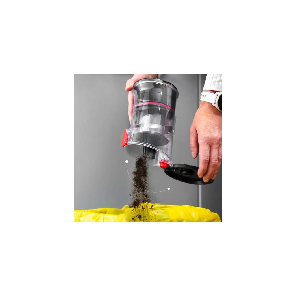 Velký zásobník na prach (1,8 l) práci usnadní a poskytne delší dobu úklidu bez neustálého přerušování kvůli vysypávání zásobníku. K vysypání stačí pouze jedno tlačítko.