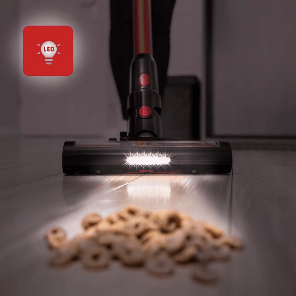 LED osvětlení před kartáčem usnadňuje úklid pod nábytkem i podél stěn. Uvidíte každý prach, dokonce i v tmavých zákoutích!