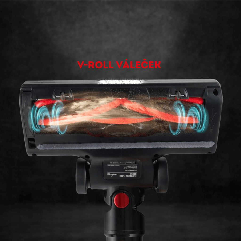 Široká hubice s válečkem V-Roll lépe odstraňuje nečistoty z koberců a tvrdých podlah.