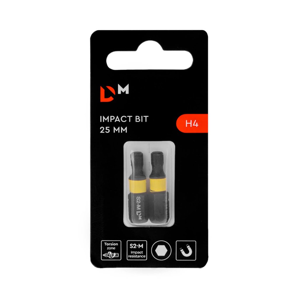 Šestihranné bity Dnipro-M Impact H4 jsou určeny pro spojovací materiál s odpovídajícím tvarem drážky. Používají se s rázovými utahováky a šroubováky.