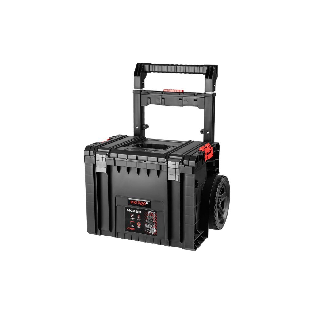 S-Box MC290 na kolečkách s objemem 29 litrů je kompaktní a obratný box řady „M“. Díky svým rozměrům je ideální pro řemeslníky, kteří často pracují ve vícepodlažních budovách.