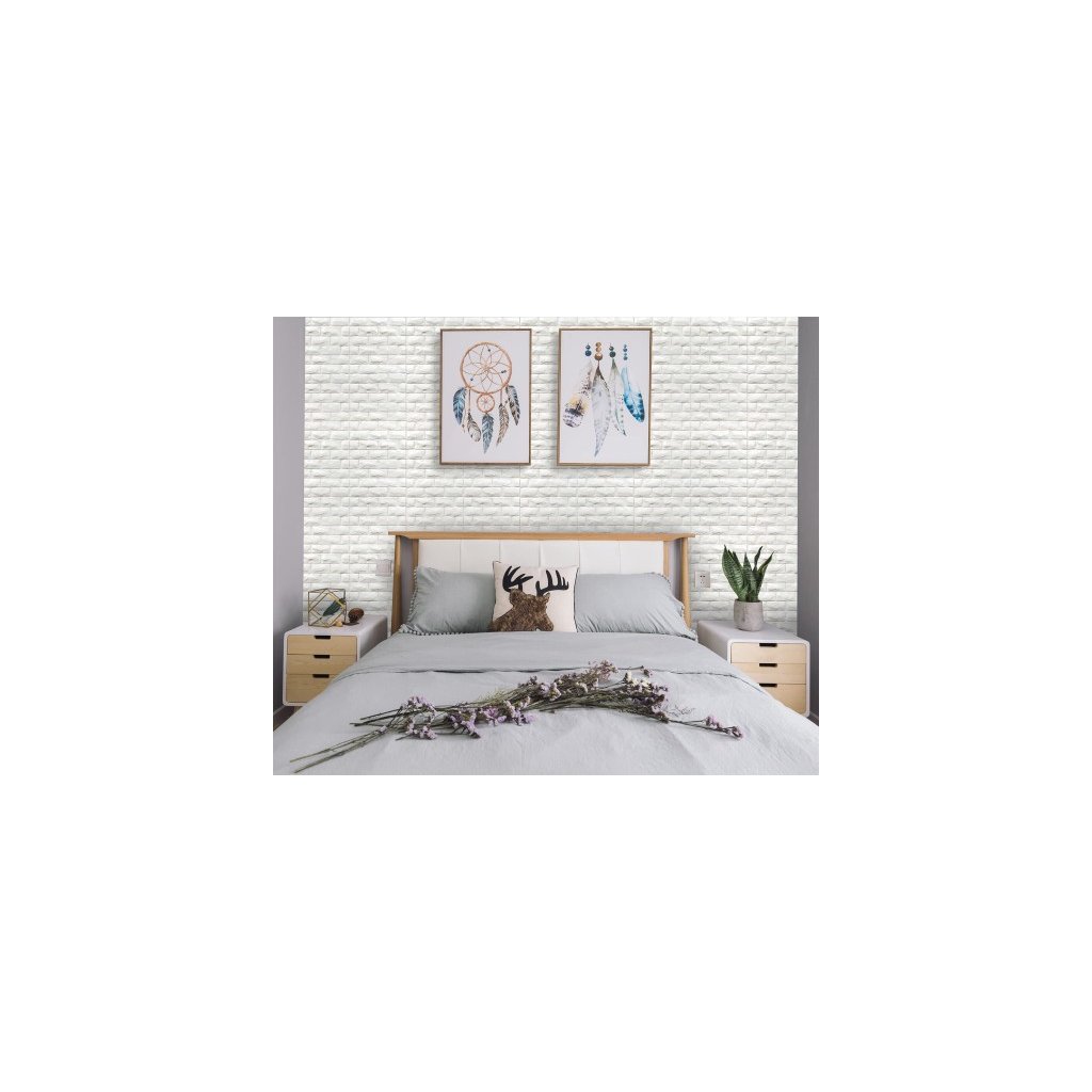 BrickWall 3D Premium – sada 20 samolepicích panelů, bílá cihla, měkká omyvatelná pěna