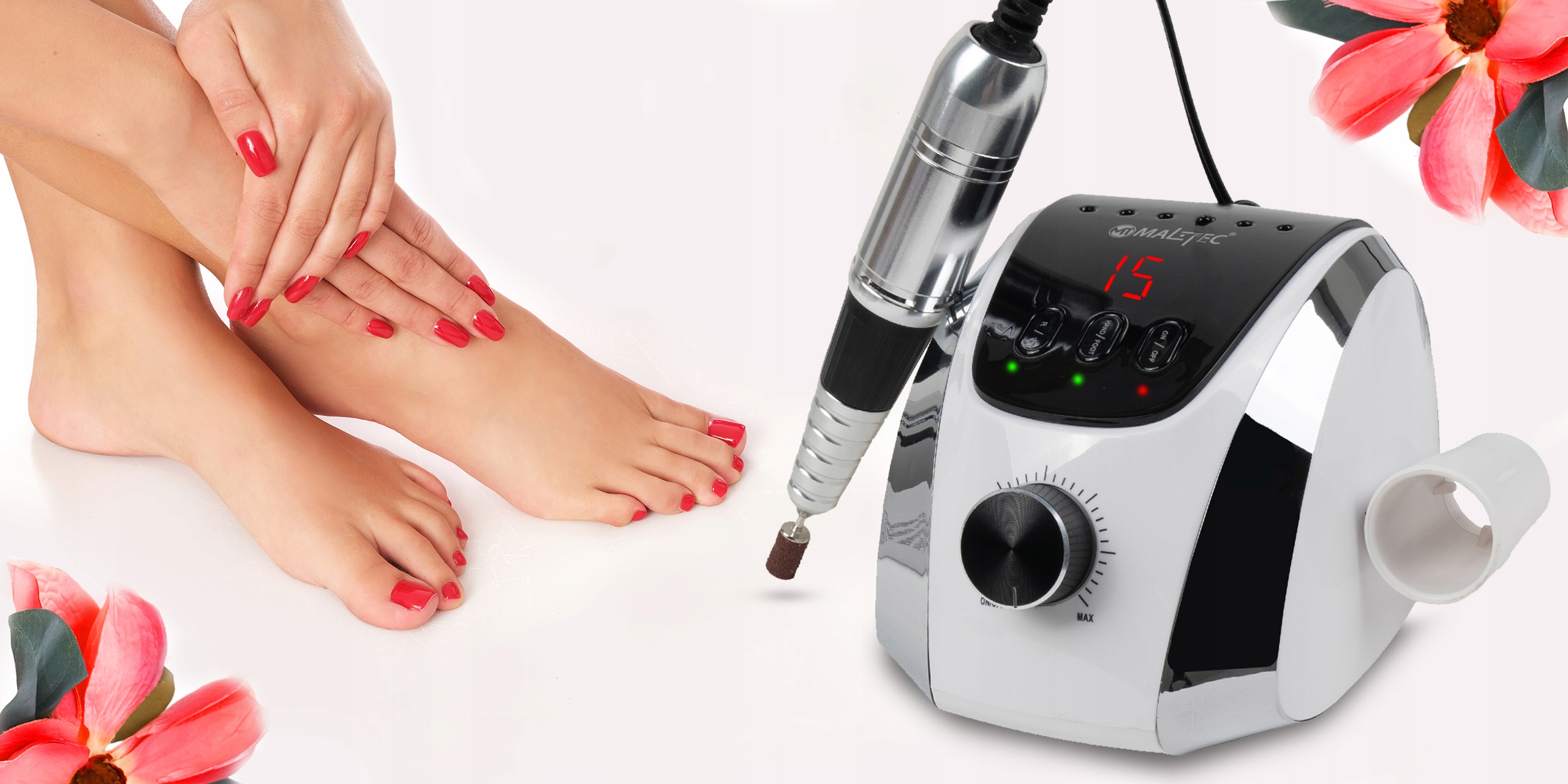 Bruska je vhodná pro profesionální použití v kosmetickém salonu i pro domácí použití. Použitím brusky se doba provedení manikúry/pedikúry sníží až o polovinu!