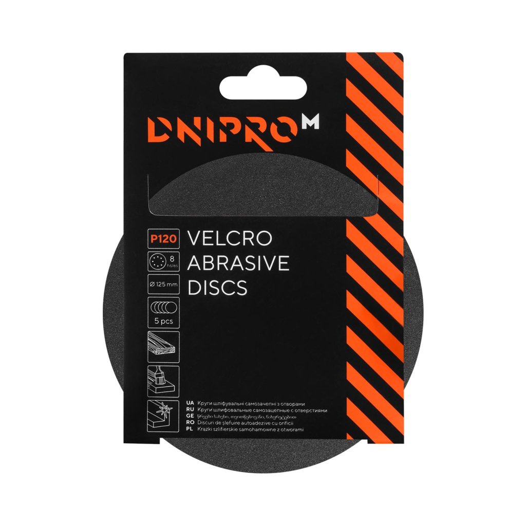 Brúsny kotúč na suchý zips P120 8 dr. 125 22,2 mm 5 ks. Dnipro-M