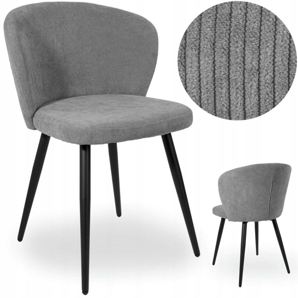 Židle je vyrobena z manšestru v módní grafitové barvě, díky čemuž se hodí do různých interiérů a dodá jim teplo a útulný charakter.