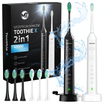 Sada 2 sonických kartáčků na zuby (6 nástavců + nabíjecí základna, pouzdro, držák na zeď a krytka špičky). Výkonné kartáčky s 45 000 pohyby za minutu, 6 režimy čištění a 3...