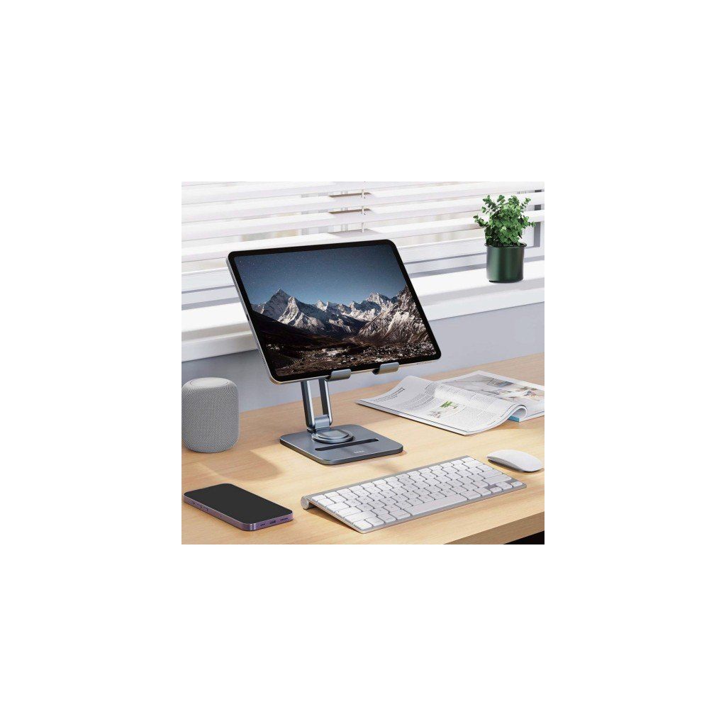 Nastavte si tablet přesně tak, jak vám to vyhovuje – skládací kovový stojan vám umožní pracovat, učit se a sledovat bez držení zařízení v rukou.