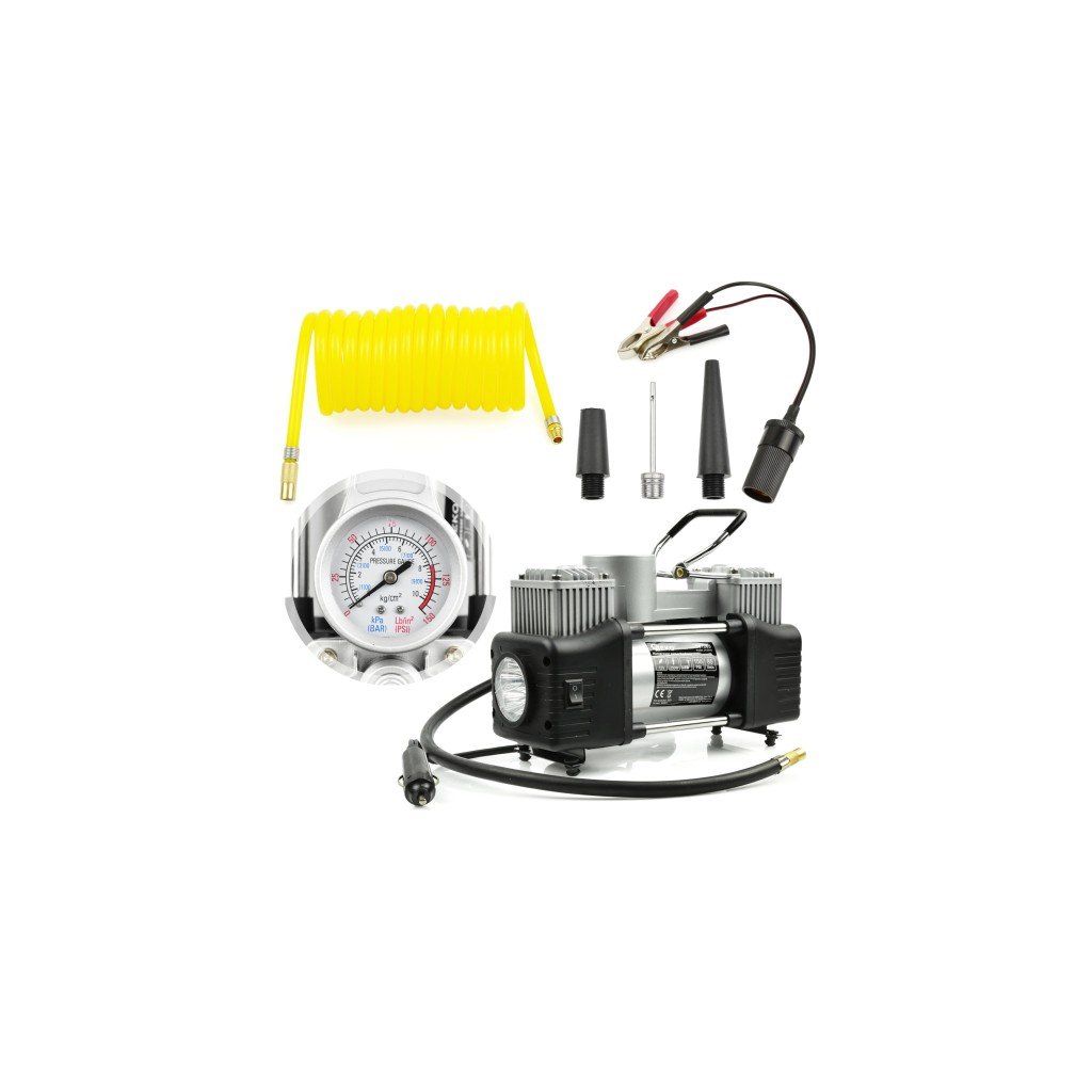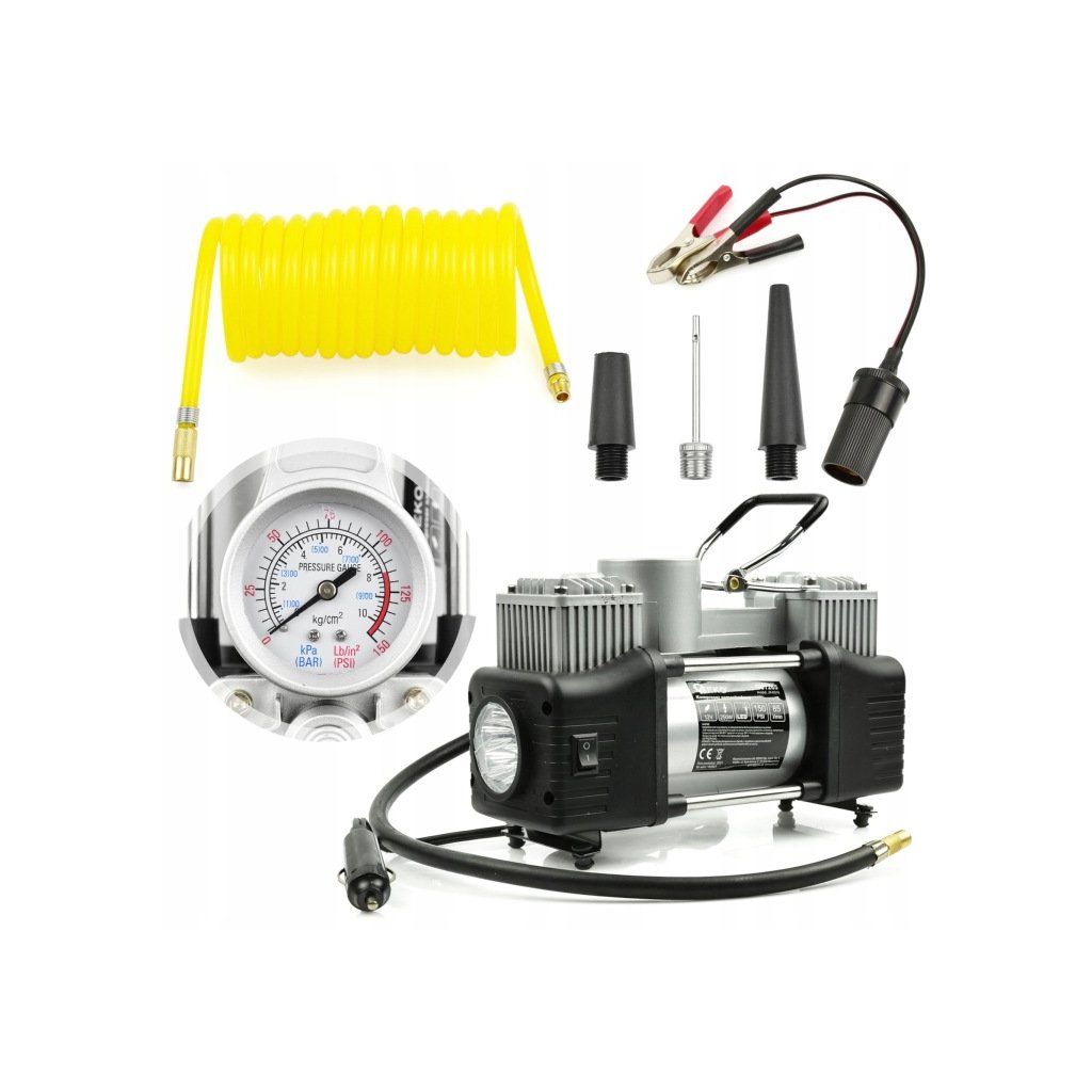 Kompresor do auta 200 W napájený napětím 12-13,5 V ze zásuvky zapalovače nebo přímo z baterie.