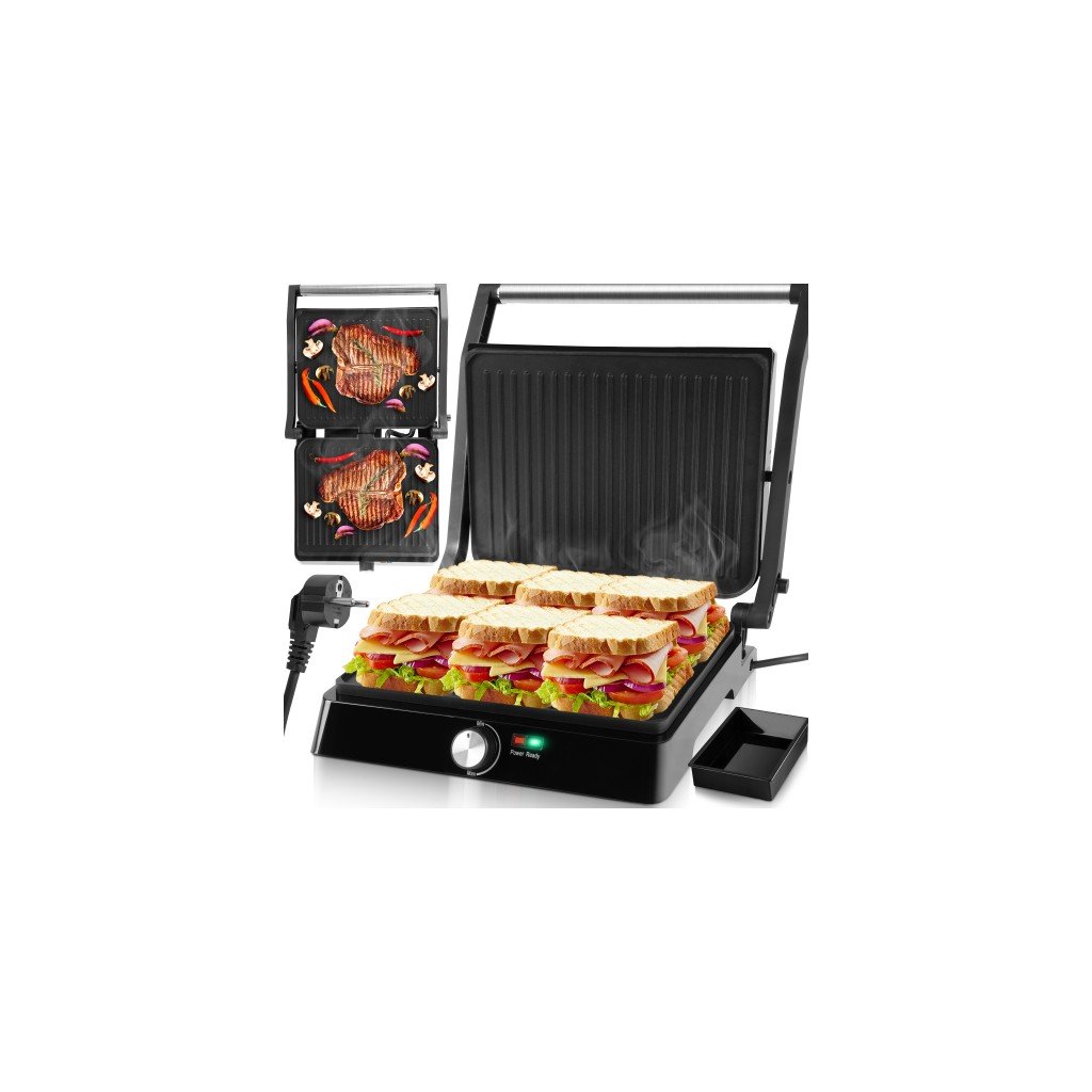 - VELKÁ TOPNÁ PLOCHA – dvě rýhované desky z vysoce kvalitního teflonu umožňují rovnoměrné opékání produktů