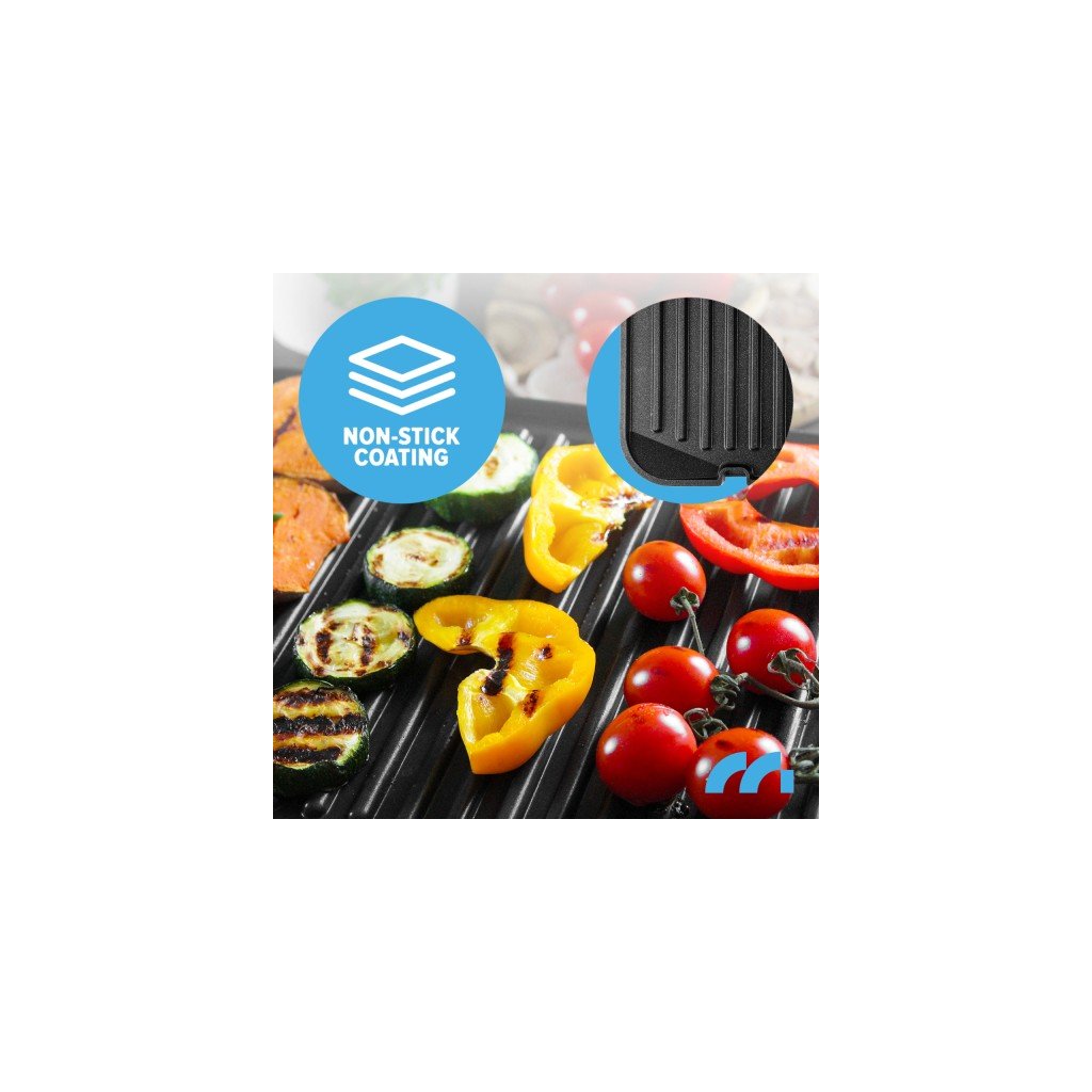 - NEPŘILNAVÁ POVRCHOVÁ ÚPRAVA – zabraňuje přilepení jídla k povrchu, což usnadňuje vyjmutí jídla a čištění grilu po použití