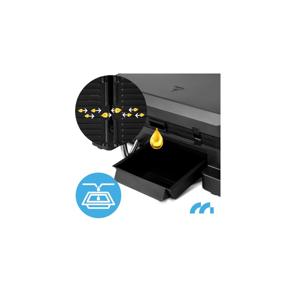 Odkapávací miska navíc shromažďuje přebytečný tuk a šťávy, díky čemuž je čištění grilu rychlé a pohodlné.
