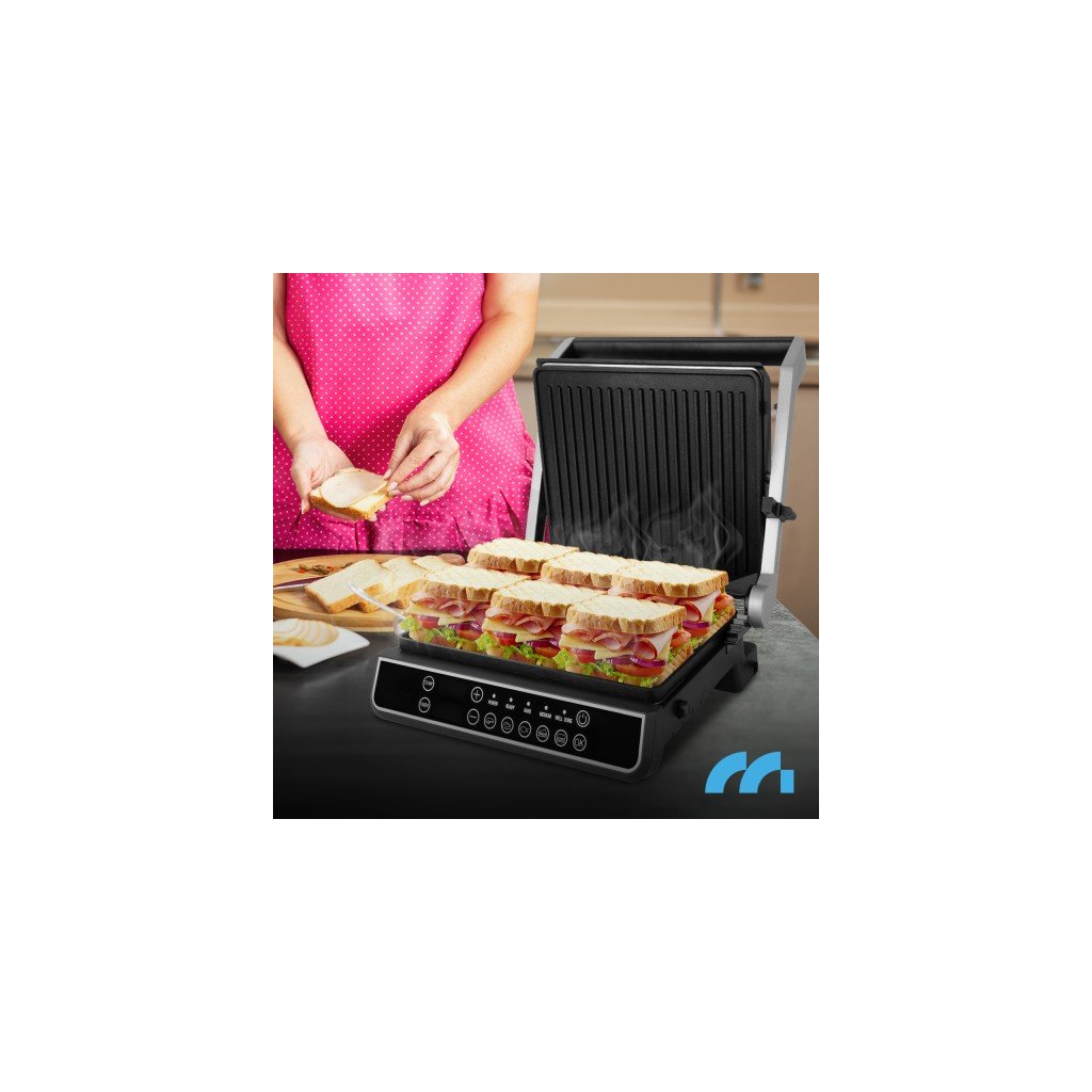 Možnost rozložení grilu na plocho (otevření o 180°) umožňuje grilování na obou deskách současně, což zvyšuje efektivitu.
