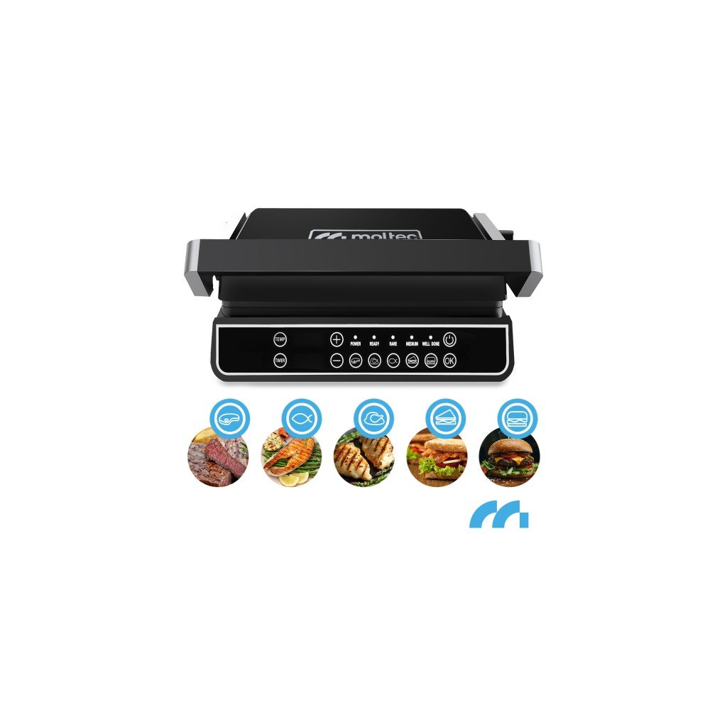 - 5 AUTOMATICKÝCH PROGRAMŮ – různé programy určené pro grilování steaků, sendvičů, kuřete, ryb a hamburgerů, které zajišťují ideální výsledky pro každé jídlo
