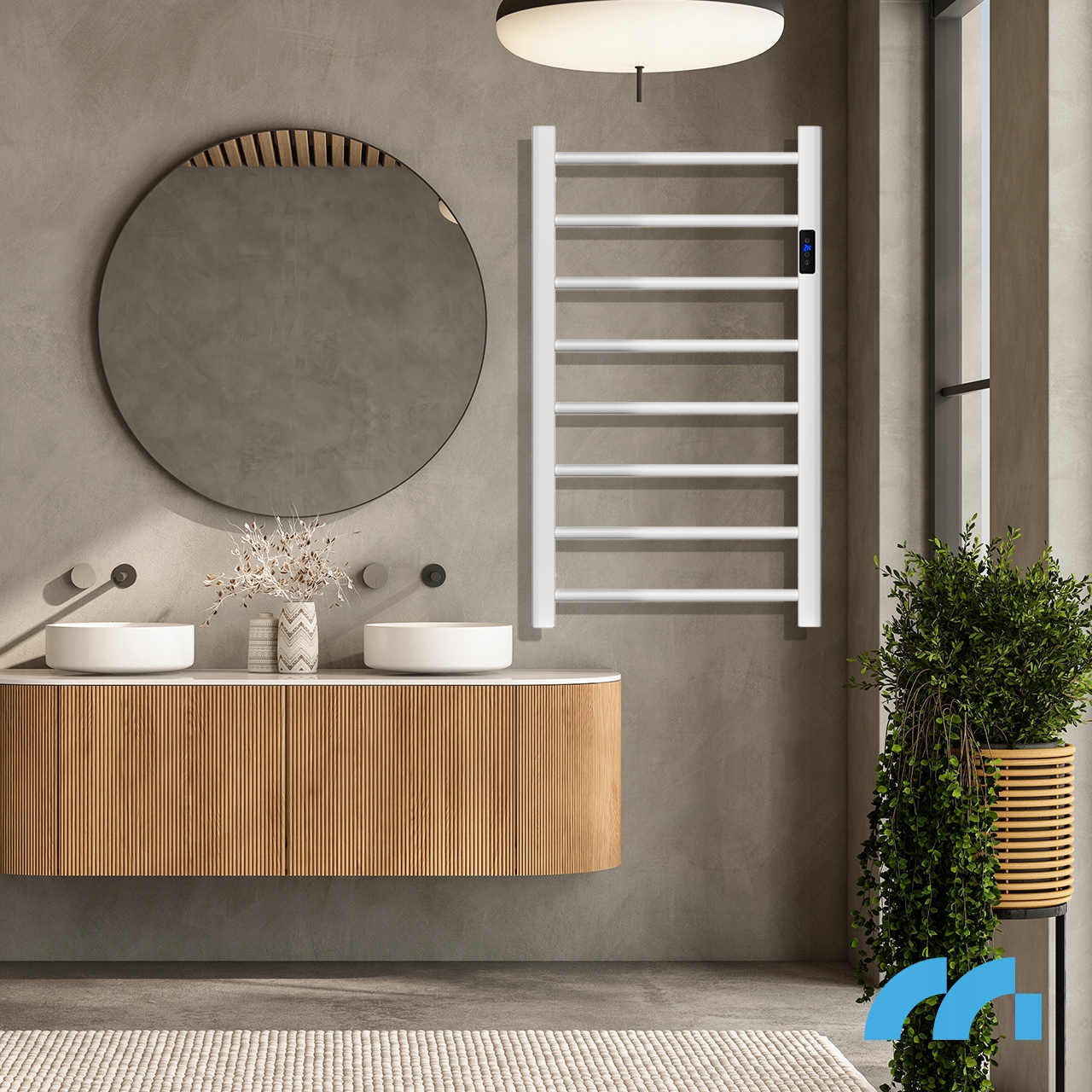 Montáž na stěnu umožňuje ušetřit místo a dodává koupelně elegantní vzhled, zatímco volitelná možnost umožňuje snadné přenášení radiátoru podle potřeby.
