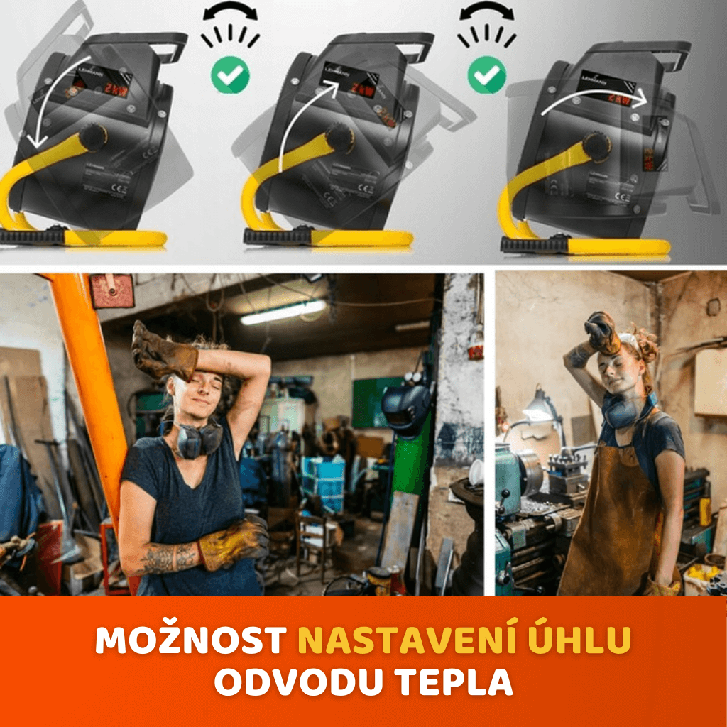 Pevná křídla ventilátoru namontovaná v zařízení umožňují rychlé šíření požadovaného vzduchu, což ve výsledku umožňuje zahřát i velmi velké objekty v krátkém čase.