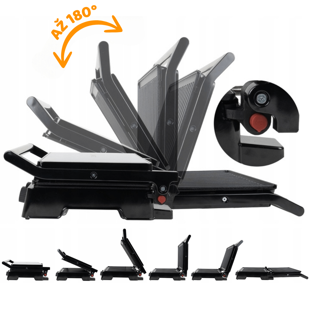 - 3 možnosti grilování: při zavřeném víku, pod úhlem 90° nebo 180°