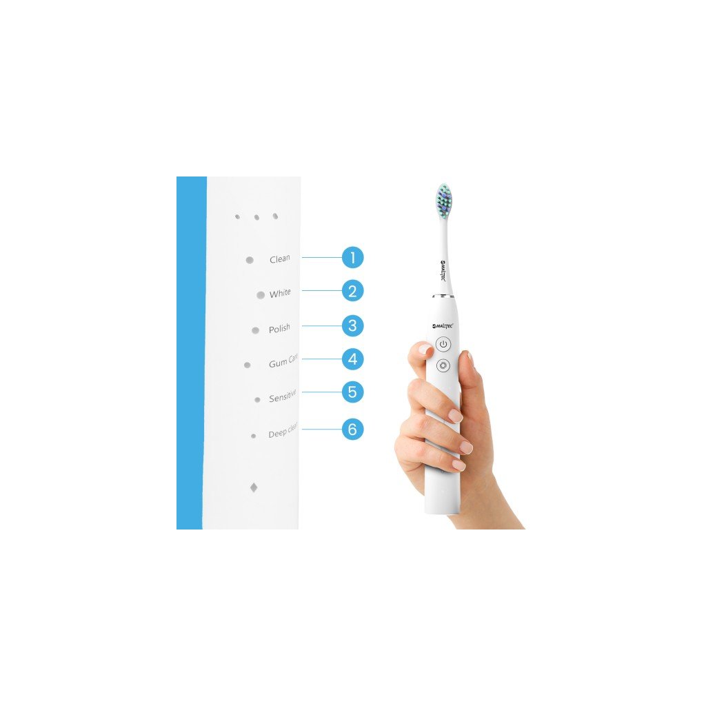 Sonická technologie uvede hlavici kartáčku do jemných, ale rychlých pohybů, které zajišťují důkladnější a intenzivnější čištění ve srovnání s elektrickými kartáčky.