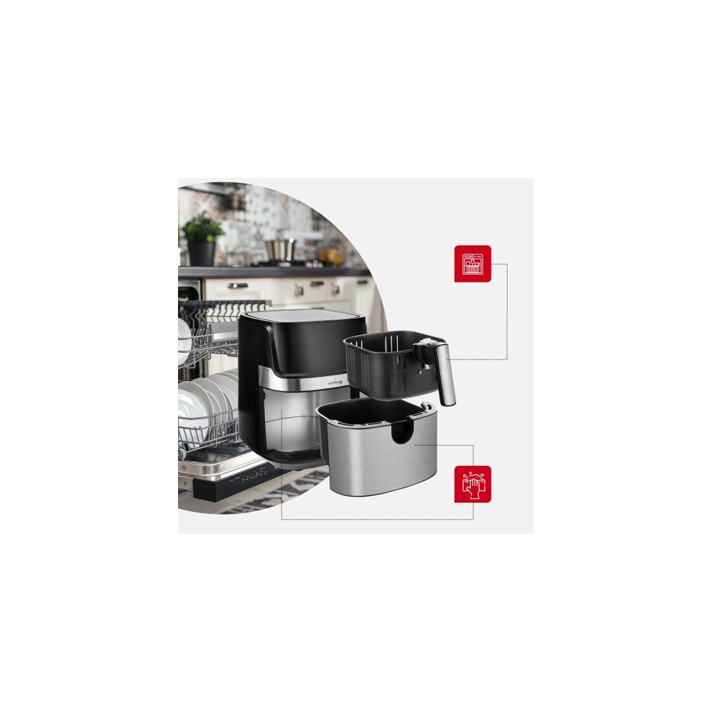 Nechcete ztrácet čas úklidem? Koš vytahovaný ze zásuvky v fritéze usnadňuje servírování jídla a po skončení práce jej lze umýt v myčce nádobí. Neztrácíte čas a úklid je jednodušší.