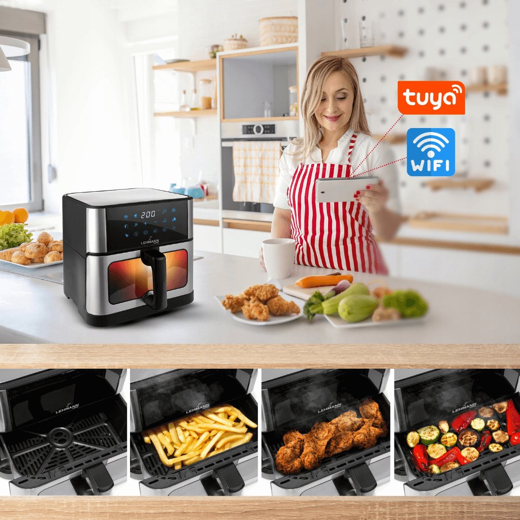 S pomocí bezplatné specializované aplikace „Tuya“ na Apple Store nebo Google Play nyní můžete svou fritézu ovládat na dálku. Snadno ji propojíte s internetovou sítí a získáte kontrolu nad procesem přípravy pokrmů.