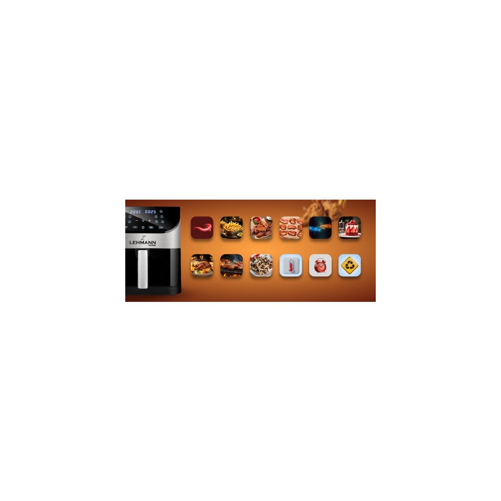 ✔ Horkovzdušná fritéza nabízí ve své užitečnosti funkce jako je grilování, pečení, ohřívání. Má 12 různých programů! Díky tomu můžete připravovat různé pokrmy.