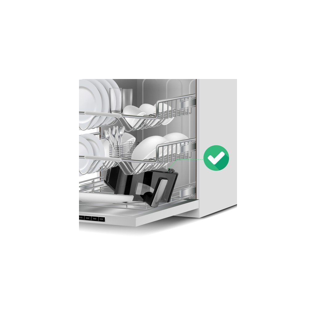Po dokončení práce z ní snadno vyjmete tácek a umyjete pod tekoucí vodou. Během několika okamžiků po obědě už budete po umytí. Prvky jako tácky apod. lze mýt v myčce nádobí.