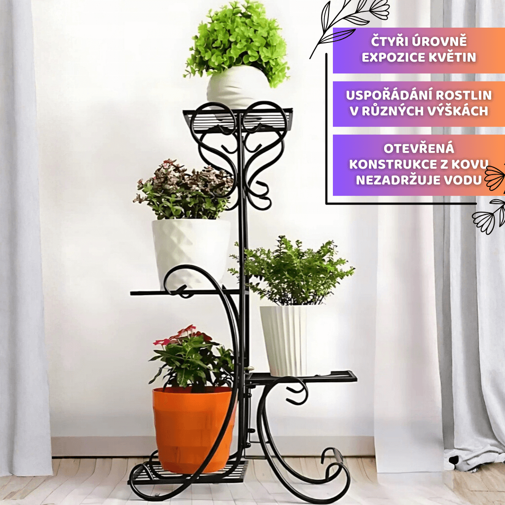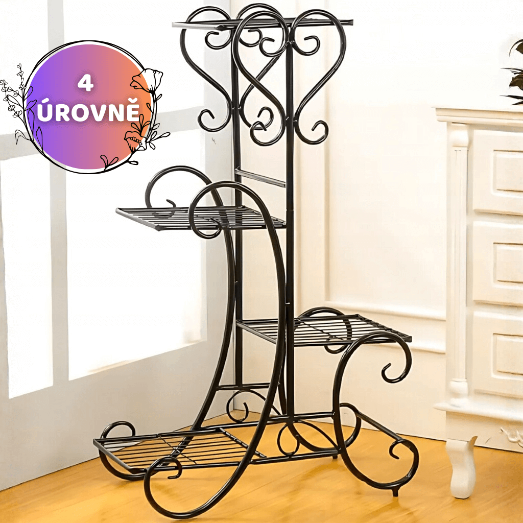 GreenStand kovový stojan na rostliny 79 cm, 4 úrovně, s ozdobným kováním