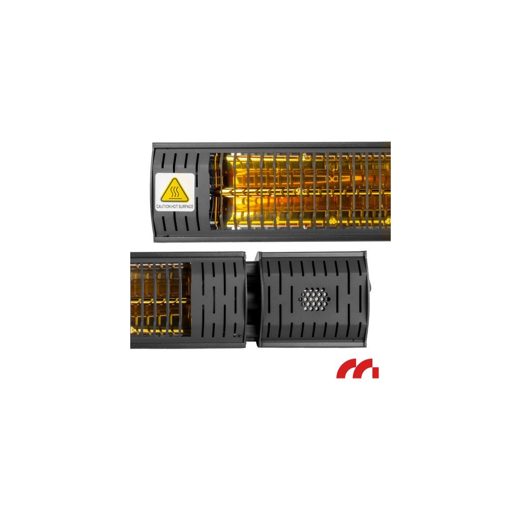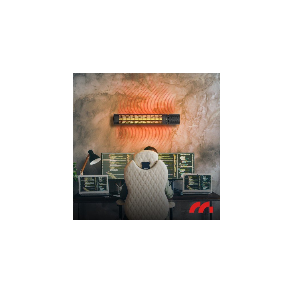 Radiátor je bezpečný pro použití jak v interiéru, tak i venku (pod střechou), díky čemuž se skvěle hodí na balkon, terasu nebo do restaurační zahrady.