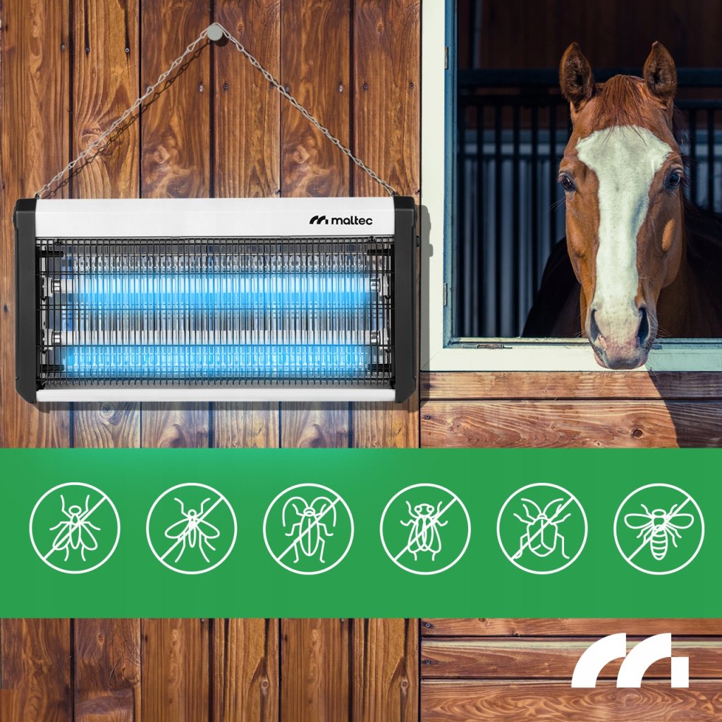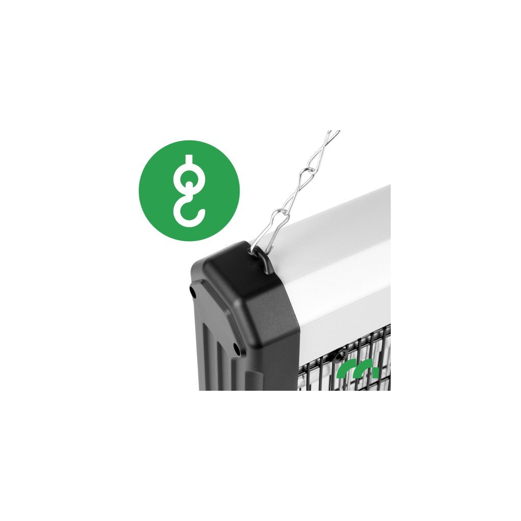 Lampa se skvěle hodí do míst, jako je dům, kuchyně, sklad, obchod s potravinami, výrobní hala, nemocnice nebo restaurace. UV světlo účinně přitahuje hmyz a kontakt se sítí o vysokém napětí 3800 V jej okamžitě eliminuje.