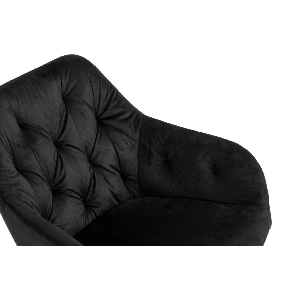 Jídelní stůl doplňují elegantní židle SIENA s područkami. Židle nabídne pohodlí a moderní design. O vaše pohodlí se postará komfortní čalounění v černém sametu s dekorativním prošíváním. Pevné kovové nohy v černém provedení dodají židli patřičnou stabilitu.