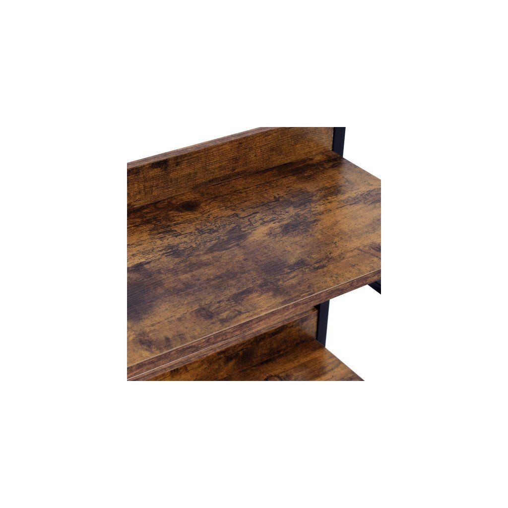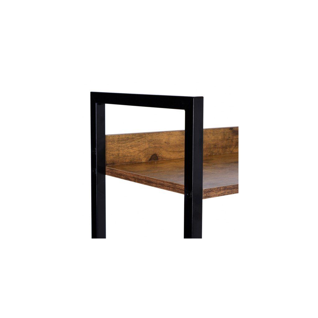 - Nejvyšší kvalita a pozornost k detailům: Konstrukce je vyrobena z ocelových profilů práškově lakovaných v černé barvě. Police jsou vyrobeny z odolných dřevěných laminovaných desek v barvě tmavého dubu.