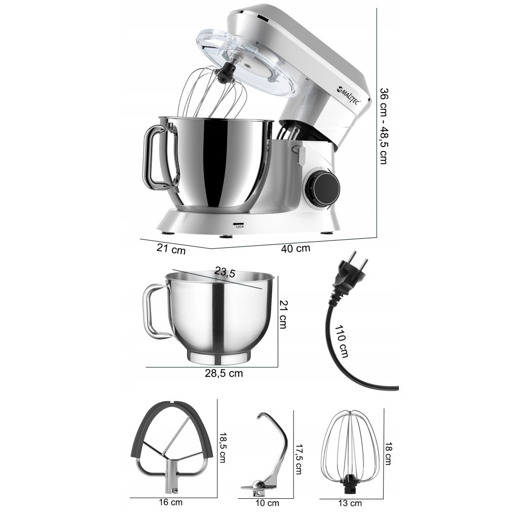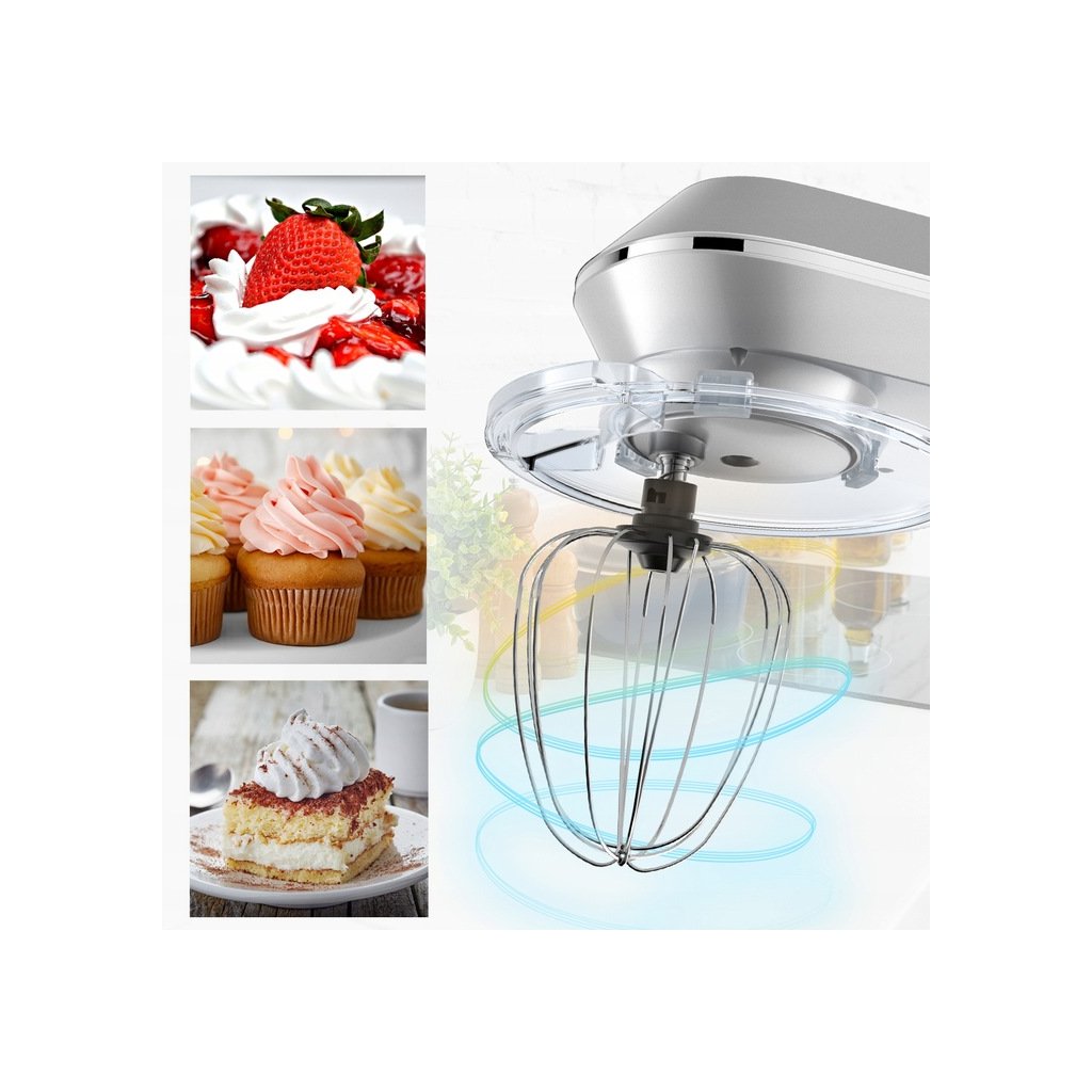 V sadě dodáváno se třemi hroty – šlehací metla, hák a míchadlo.