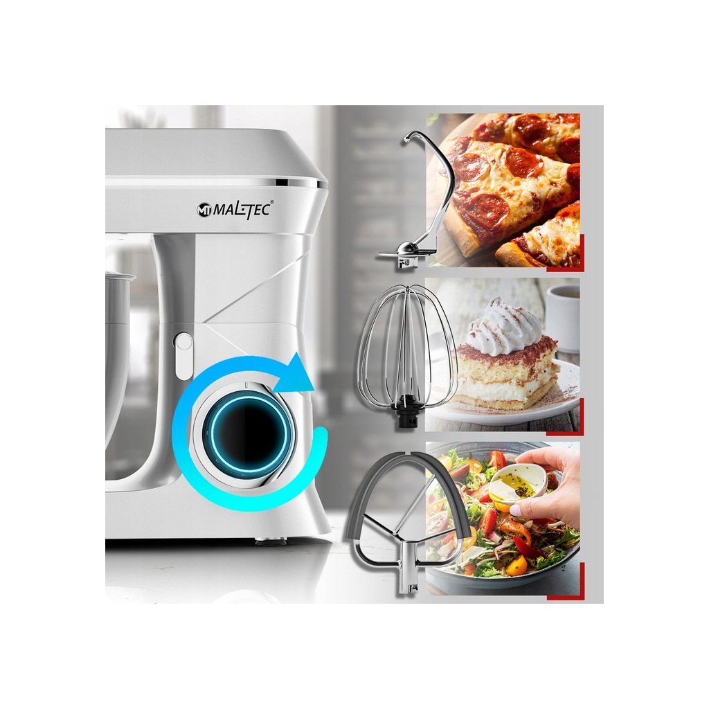 - Obrovské množství možností v jednom zařízení (bičování, hnětení, vypracovávání těsta, míchání)