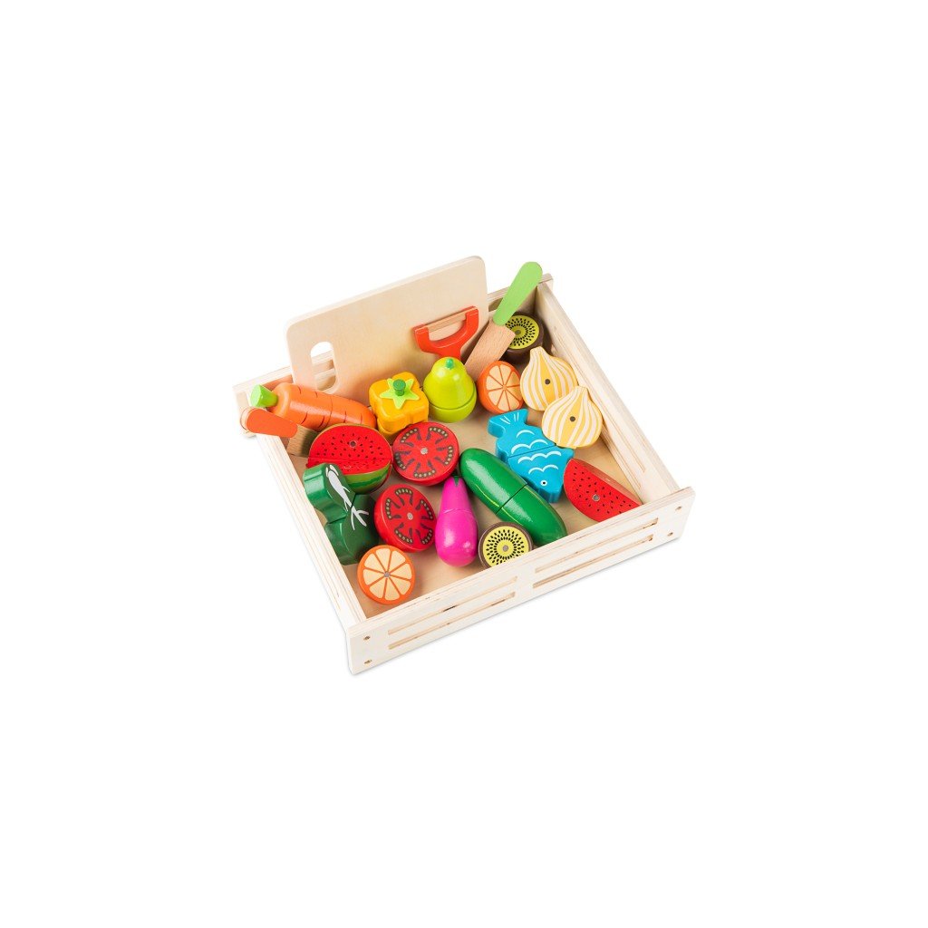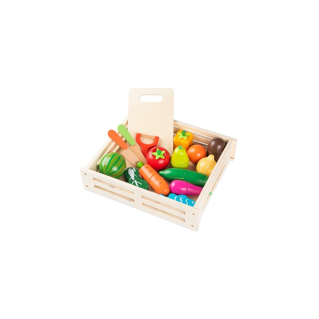 DŘEVĚNÉ OVOCE A ZELENINA NA KRÁJENÍ XXL SADA NA MAGNET S KRABIČKOU 18 KS