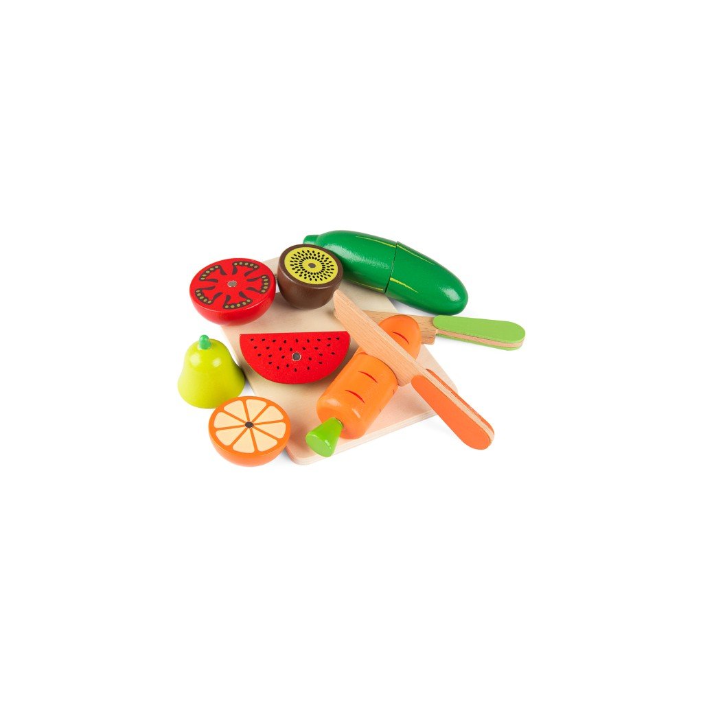 Možnost prezentace jednoduchých každodenních činností pomocí předmětů ze sady během spontánní hry trénuje motoriku a orientaci v prostoru a pomocí rodiče procvičuje rozpoznávání předmětů a plnění příkazů. Použití dřevěného ovoce a zeleniny je skvělým způsobem, jak trénovat mysl malého člověka prostřednictvím interaktivní hry.