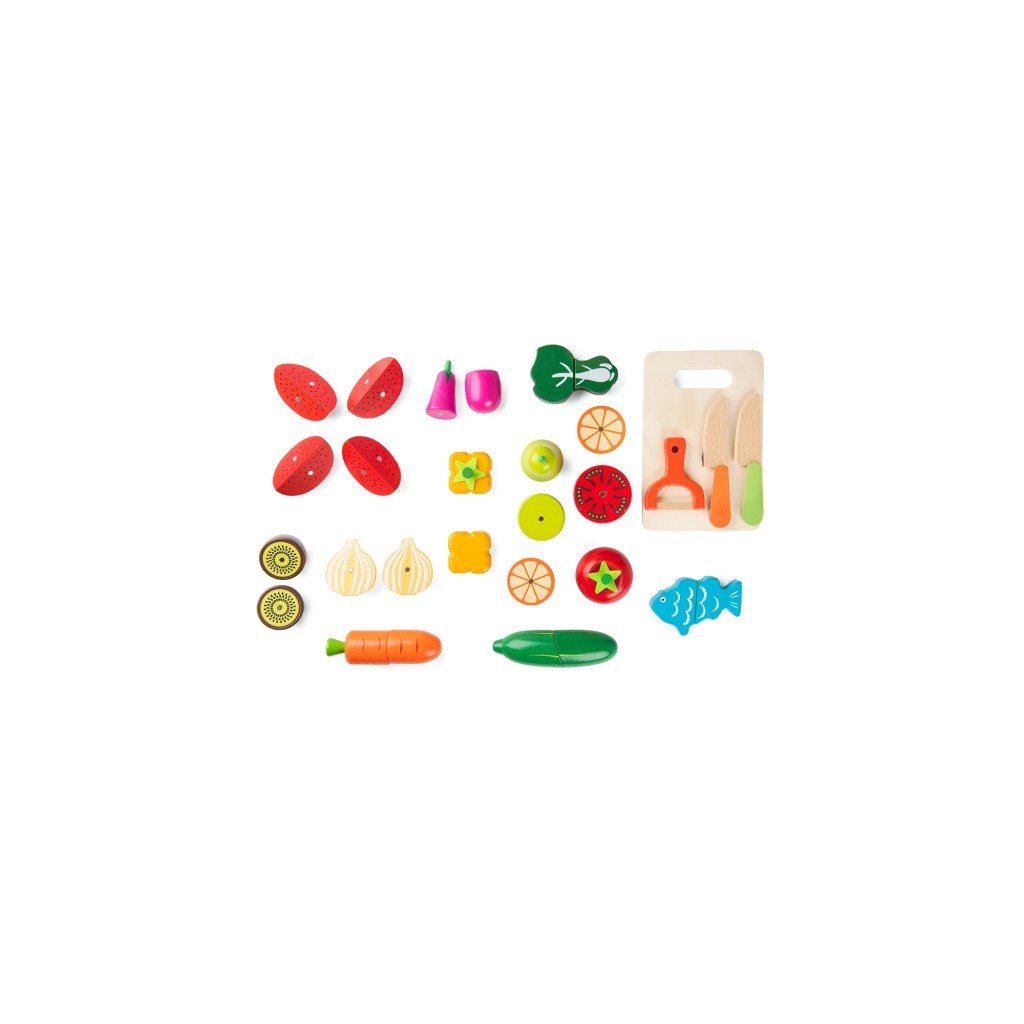 LittleCheff obrovská dřevěná magnetická sada na krájení ovoce a zeleniny