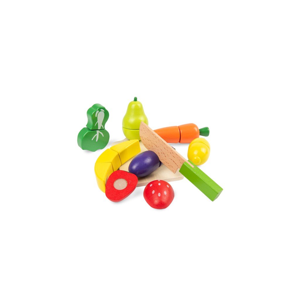 Sada dřevěných plodů a Zeleniny na krájení + nůž + prkénko na krájení