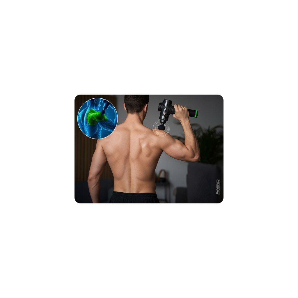 Masážní pistole je ideální pro uvolnění napjatých svalů po práci, urychlení regenerace po tréninku, pro účely zahřátí před protažením i pro relaxační masáž.
