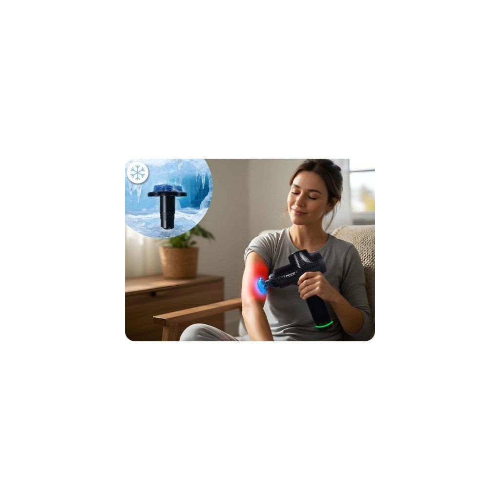 Koncovka je přizpůsobena pro použití v kombinaci s chlazením – po předchozím ochlazení udržuje nízkou teplotu, díky čemuž má masáž uklidňující účinek, snižuje otoky a snižuje záněty. Je to ideální řešení při přetížení, zraněních nebo po intenzivním tréninku, kdy vám záleží na rychlém efektu úlevy.