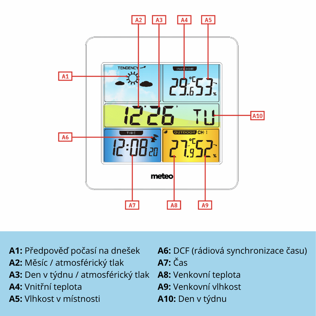 - Rozsah měření (venkovní teplota): -20 °C až +50 °C