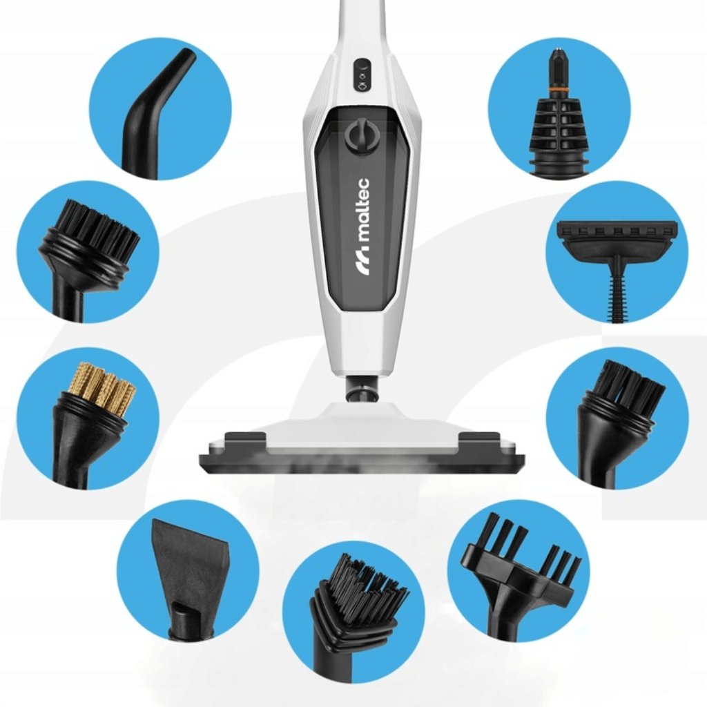 Tento parní čistič je zařízení 12v1, které se hodí do celého domu. Díky různým koncovkám vyčistíte: